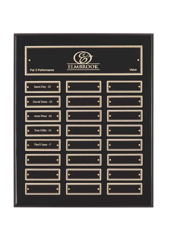 Check out the stunning Black Gloss Perpetual Plaque with 24 Plates. Available at Concord Trophies to honor special accomplishments.