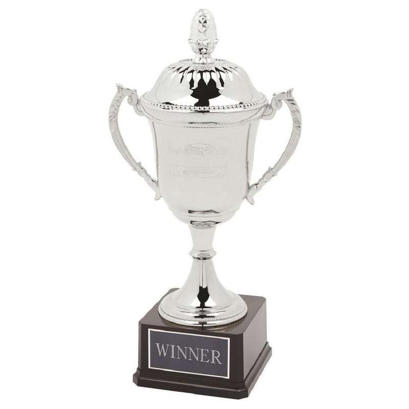 Stunning Nickel Plated Cup on Black Weighted Base with Lid - Shop Now
