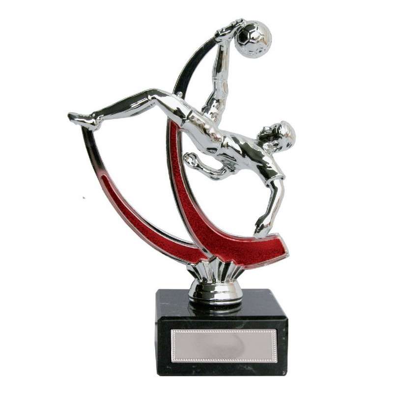 SILVER / RED OVERHEAD KICK FOOTBALL TROPHY