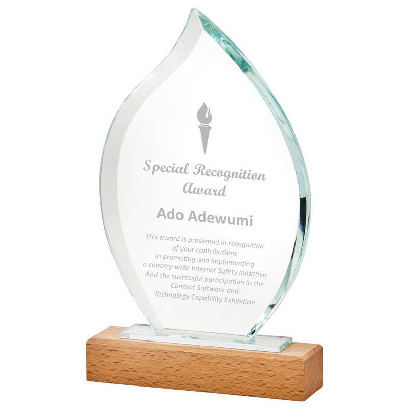 Explore the Tear Drop Stand with Wooden Base, perfect for corporate crystal awards. Check out the different sizes available at Concord Trophies!